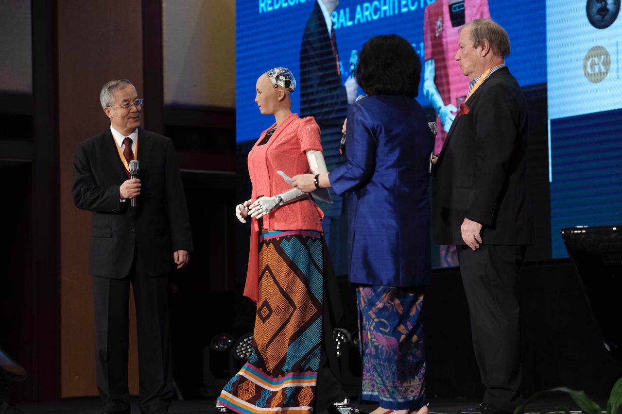 The meeting took place against the backdrop of rising concerns on the rapid advancement of technology and how it will affect the global economy in terms of globalization, cyber security and future skills workforce. Participants engaged in a first-hand discussion with Sophia – a human-like robot modelled after actress Audrey Hepburn.