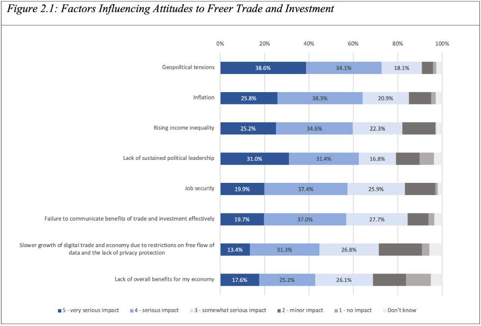 Nevertheless, the integration project is incomplete: the FTAAP continues to be a key goal strongly supported by APEC-based regional organizations such as ABAC. The economics certainly favor an outward-oriented, region-wide agreement like the one envisioned at the 2010 Yokohama APEC Leaders Meeting using the most advanced template possible, currently offered by the CPTPP. Respondents from the PECC 2022 Survey strongly support continuing along the pathways to the FTAAP.
