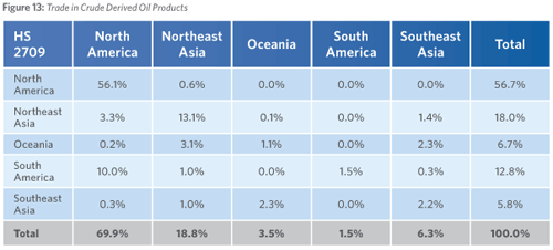 Even though oil and gas is the most traded product in the Asia-Pacific region, there is virtually no energy trade across the Pacific. The major energy importing economies of Northeast Asia source their oil and gas largely from the Middle East, Southeast Asia and Australia, while the United States imports energy from the Americas, West Africa, and the Middle East. Indeed, transpacific trade in energy products (oil, gas, and coal) accounts for only 1.4 percent of global trade in those products. The segmentation of energy markets between Asia and the Americas is seen in the sharp price differential for natural gas between the two regions, and – more recently – in a price differential for crude oil as well.