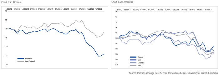 As noted in last year’s report, the quantitative easing in developed economies would have mixed impacts for emerging markets. The accommodative monetary policy stances were adopted to restore confidence in financial markets which in turn would drive global trade and investment flows. However, there were strong concerns that it was fuelling high capital inflows, currency appreciation and catalyze asset bubbles. On the flip side, without these extraordinary measures the potential for financial market disorder would have been high, as the IMF’s Multilateral Policy Issues report notes: “the mere talk of tapering off QE by the US Federal Reserve officials pushed bond yields up worldwide and created significant volatility in equity markets.”