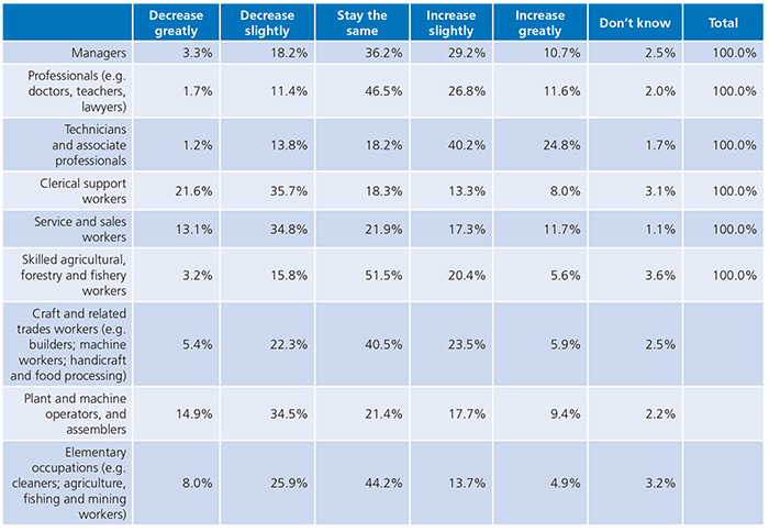 7. How do you think the digital economy is likely to impact the number of the following types of jobs in your economy?